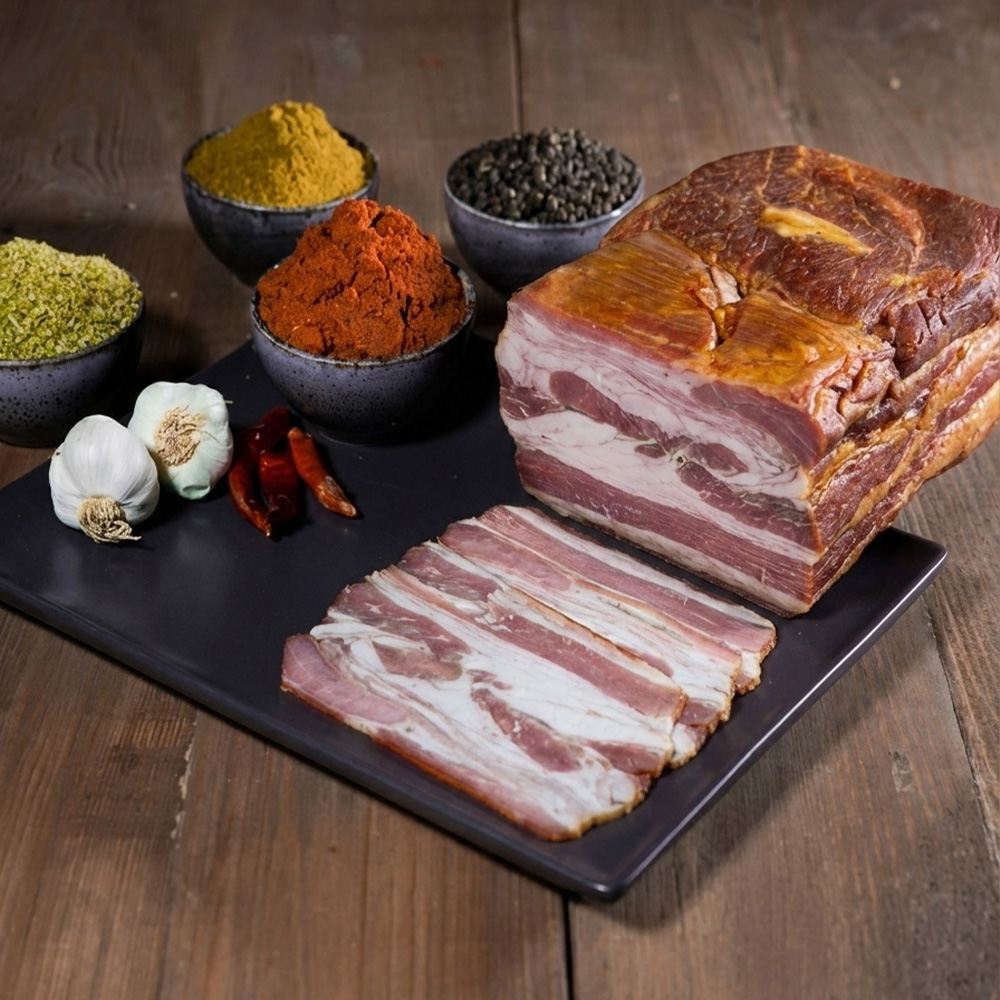 İmza lezzetlerimizden dana kaburga füme , dana etinin fazla yağlarının ve sinirlerinin alınarak, presleme sistemiyle yapılan özel dumanlama fırınlarında pişirilmesiyle üretilmektedir. sandviç'lerin vazgeçilmez lezzetlerindendir..